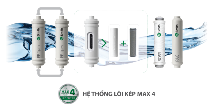 Tiền lõi lọc kết nối song song được kết hợp cùng lõi lọc Composite thế hệ mới, giúp loại bỏ chất bẩn cùng các chất độc hại có trong nước, giúp tăng tuổi thọ lõi lọc 2 lần, giảm thiểu hiện tượng tắc lõi tiền lọc, thời gian thay thế lõi lọc tăng tới 18 tháng. Hệ thống lõi tiền lọc kết hợp cùng bơm mạnh mẽ hơn giúp sản phẩm hoạt động ổn định hơn, bèn bỉ hơn trong điều kiện chất lượng nước máy đầu vào kém chất lượng và không ổn định.