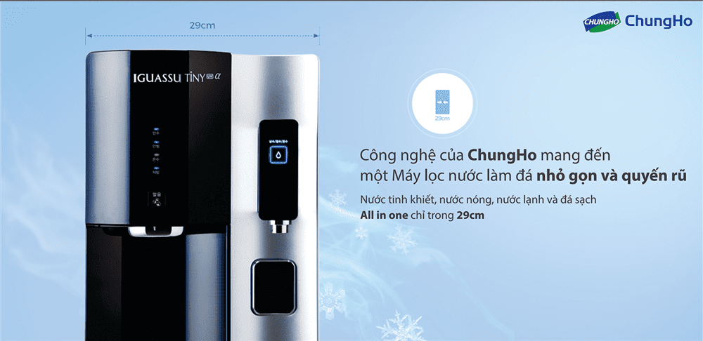 Hiện nay, có rất nhiều thương hiệu máy lọc nước ra đời để phục vụ nhu cầu cho nhiều gia đình.Tuy nhiên, nhu cầu của khách hàng không chỉ dừng lại ở chất lượng máy phải tốt, lọc phải sạch mà yêu cầu về kiểu dáng hay thiết kế, sự tiện dụng cũng là những ưu tiên hàng đầu. Thấu hiểu được điều đó, Chungho đã cho ra đời đứa con cưng Máy Lọc Nước Chungho Iguassu Tiny 900 ICE. Tích hợp các chế độ nước nóng, lạnh, thường, làm đá trong một chiếc máy nhỏ gọn, Chungho Iguassu Tiny 900 chắc chắn sẽ không làm các gia đình thất vọng.