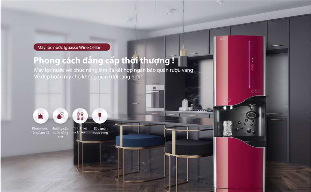 Máy lọc nước làm đá và bảo quản rượu vang Chungho Iguassu Wine Cellar sử dụng các đường cung cấp nước riêng biệt để nước thường, nước lạnh, nước nóng không lẫn vào nhau, giúp nâng cao sự hài lòng của khách hàng về nhiệt độ nước được cung cấp