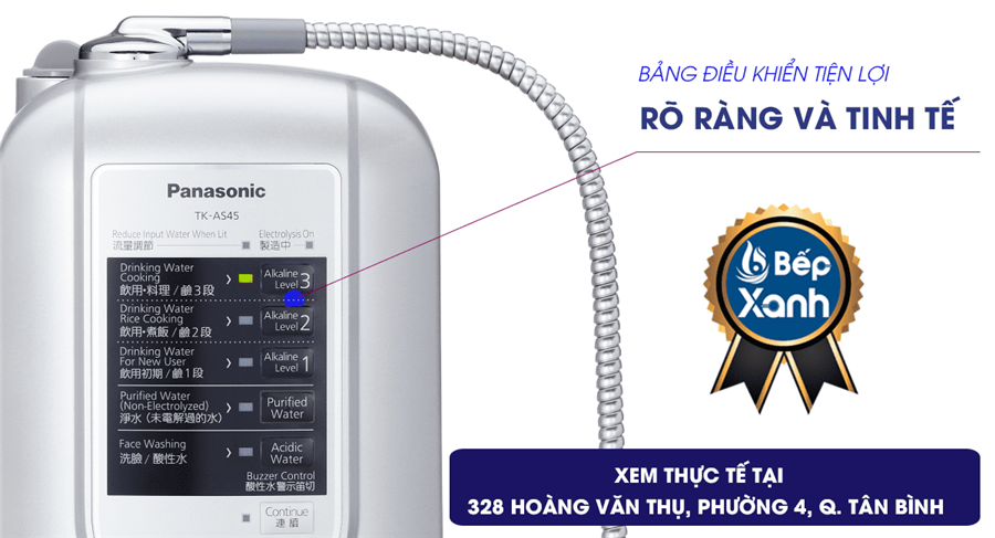 Máy lọc nước Panasonic TK-AS45 là 1 trong 3 dòng máy điện giải bán chính thức tại Việt Nam, bên cạnh dòng Panasonic TK-AS66, Panasonic TK-AB50