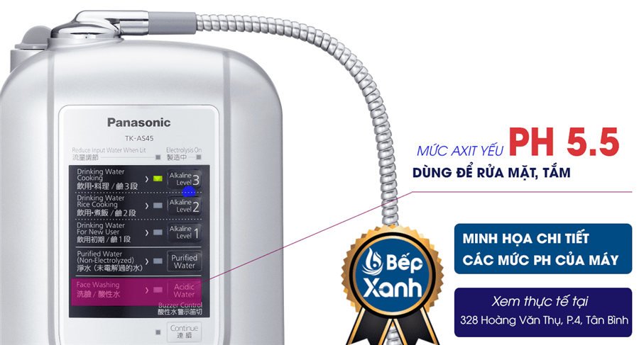 Máy điện giải Panasonic TK-AS45 sẽ cho ra 5 loại nước quý, giúp gia đình bạn an tâm sử dụng nguồn nước an toàn và hiệu quả