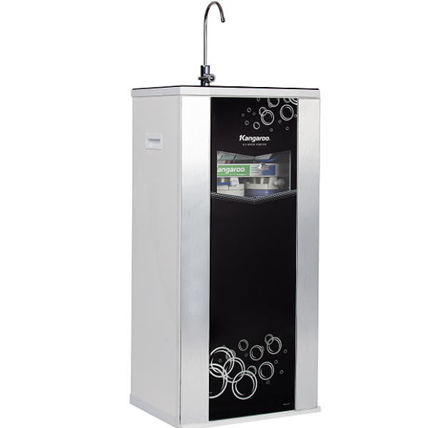 Máy lọc nước Kangaroo KG100HA có thể lắp đặt vào tủ kính cường lực như trong hình. Với kích thước của tủ là: Ngang 44cm x Cao 90 cm x Dày 35 cm. Ưu điểm của việc lắp máy vào tủ đó là giảm được nguy cơ tái nhiễm khuẩn nguồn nước sau lọc, giúp tăng độ thẩm mỹ cho khu vực lắp máy, thuận tiện trong việc vệ sinh, bảo trì và bảo hành máy.