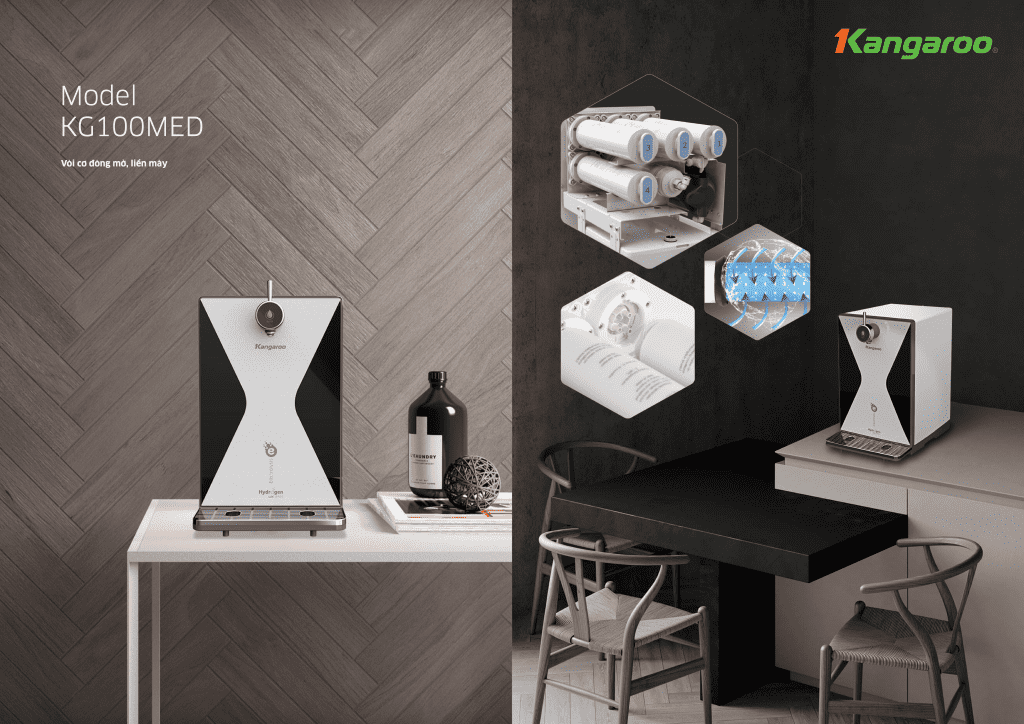 Đặc biệt, Kangaroo KG100MED có thiết kế vòi cơ đóng, mở đi liền máy hoàn toàn khác biệt và độc đáo, bạn sẽ không còn phải khoan cắt bàn đá, chậu rửa, hoặc tìm một không gian để lắp vòi nữa, mà có thể lắp đặt máy ở mọi vị trí, góp phần giúp không gian phòng hiện đại, sang trọng hơn.