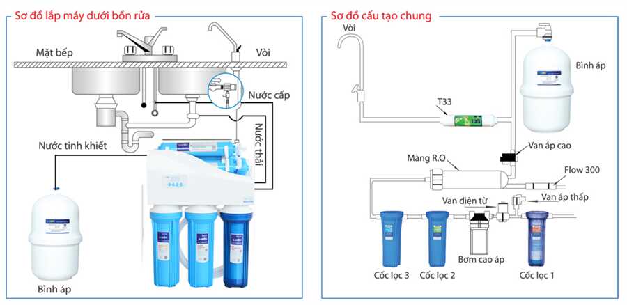 Lắp đặt thuận tiện dưới chậu rửa: Máy lọc nước gắn dưới bồn rửa chén là sản phẩm quan trọng và tiện lợi cho các hộ gia đình có không gian nhỏ, cần thiết bị lọc nước lắp dưới chậu rửa để lấy nước sạch, an toàn sử dụng hàng ngày.