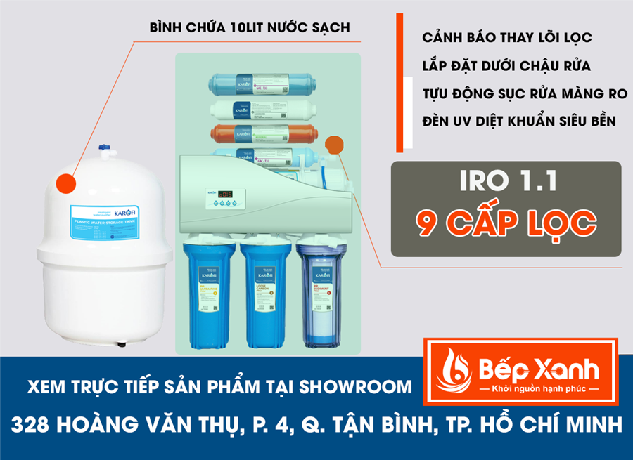 Máy lọc nước Karofi IRO 1.1 - K9I1/KV trưng bày tại Showroom Bếp XANH