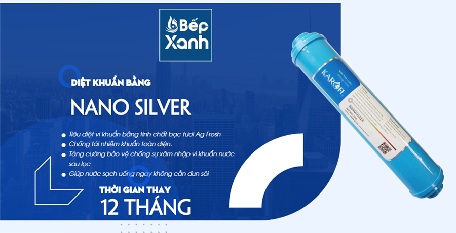 Lõi 8 NANO BẠC ( NANOSILVER ) | Được lắp ở vị trí cuối cùng của hệ thống máy lọc nước RO nhằm chống tái nhiễm khuẩn trong quá trình nước lưu thông trong hệ thống lọc.Góp phần bổ sung khoáng chất, chất điện giải có ích | 12 tháng |