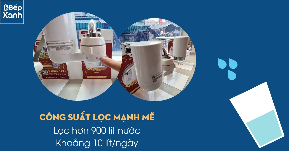Máy lọc nước tại vòi luôn được các gia đình ưa chuộng bởi dễ lắp đặt, tiện lợi. Đặc biệt hơn là máy lọc nước Cleansui EF401 này lọc với công suất lớn là hơn 900 lít, không tốn nước thải, thoải mái cho các gia đình sử dụng nguồn nước sạch.