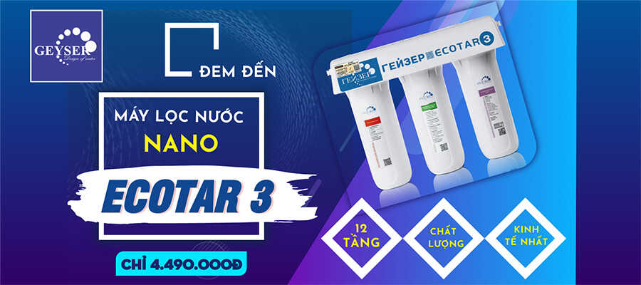 Máy lọc nước Nano Geyser Ecotar 3 là dòng máy lọc nước uống trực tiếp, cho nước sau lọc đạt chuẩn nước uống ngay, không cần đun sôi, an toàn và giữ khoáng có lợi cho cơ thể.