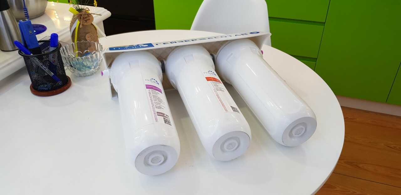 Các cốc lọc trên máy Geyser Ecotar 3 có hiển thị đầy đủ các thông số bao gồm gồm thời Khi lắp đặt máy, chất liệu tạo nên lõi lọc, tính năng lõi lọc.