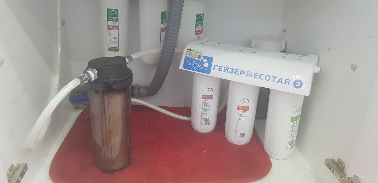 Hình ảnh lắp đặt thực tế: Máy lọc nước Geyser Ecotar 3 có thể lắp đặt gọn nhẹ và dễ dàng dưới chậu rửa chén.