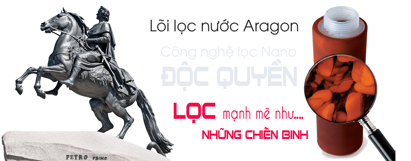 Lõi lọc Aragon là 1 sản phẩm công nghệ tuyệt vời về xứ lý nước mà chưa 1 công nghệ nào có thể sánh kịp tại thời điểm hiện tại. Ưu thế của công nghệ lọc sử dụng trong lõi lọc Aragon, đó là tích hợp 4 cơ chế trong 1 lõi lọc duy nhất: Lọc cơ học + Lọc bằng hấp thụ + Lọc bằng tro đổi Ion + Lọc và tiêu diệt vi khuẩn bằng công nghệ phủ bạc trong lõi lọc.