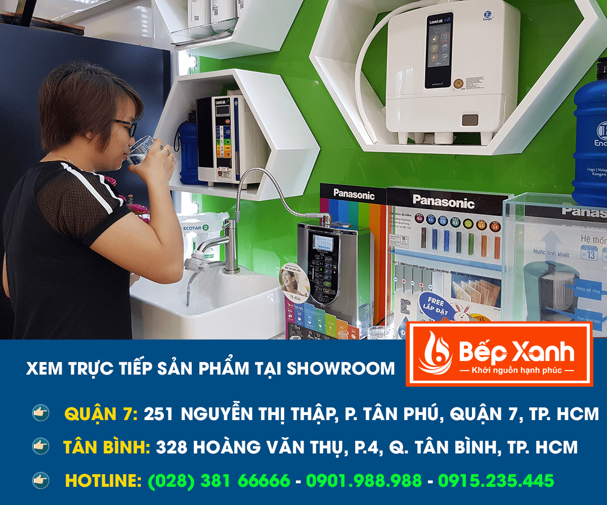 Tại Showroom Bếp XANH, quý khách có thể uống thử nước lấy ra trực tiếp từ máy lọc nước để cảm nhận vị ngon, cũng như hiệu quả lọc nước mà máy lọc nước đem lại.