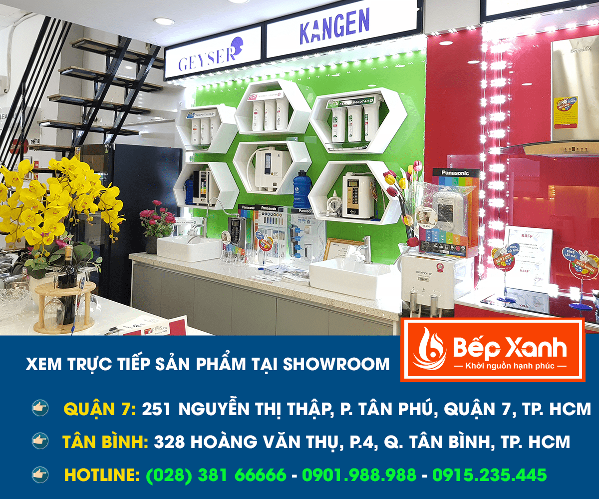 Showroom Bếp XANH là showroom lớn, uy tín tại TP. Hồ Chí Minh. Các sản phẩm Geyser được bán tại Showroom Bếp XANH rất đa dạng, từ máy lọc nước tắm Geyser, máy điện giải Cleansui, Máy lọc nước uống trực tiếp Geyser trên chậu, hoặc lắp dưới bồn, phụ kiện lọc nước Geyser.