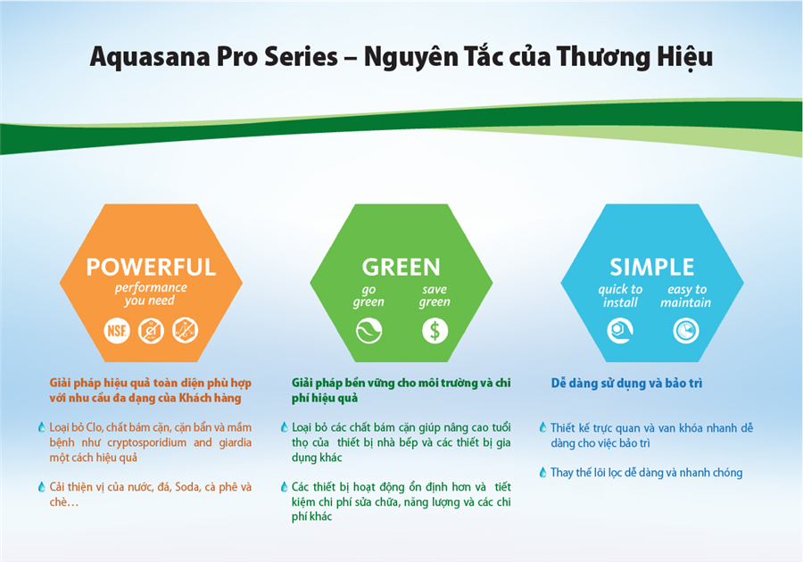 Trên thế giới, Aquasana là nhà sản xuất hàng đầu tại Mỹ về nghiên cứu và sản xuất hệ thống lọc nước thương mại như hệ thống lọc nước đầu nguồn, hệ thống lọc nước công nghiệp, hệ thống lọc nước Foodservice, máy lọc nước gia dụng,…