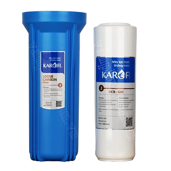 – Cấu tạo: Lõi được cấu tạo bởi vỏ nhựa, chứa bên trong là than gáo dừa được hoạt hóa. Than hoạt tính có tính cấu trúc xốp rỗng, các vết rỗng – nứt vi mạch đều có tính hấp thụ rất mạnh – Chức năng: Hấp thụ mạnh các loại chất nhờn, mùi và hữu cơ hòa tan. Than hoạt tính còn chứng tỏ được hiệu quả trong xử lý chất phóng xạ, asen và amoni.– Thời gian thay thế: 6-9 tháng