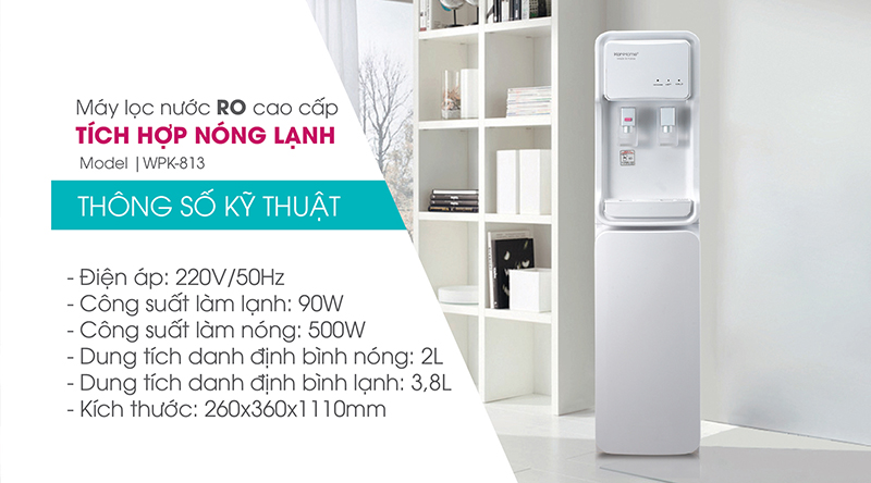 Máy lọc nước RO nóng lạnh Korihome WPK 813 6 lõi được nhập khẩu nguyên chiếc từ Hàn Quốc, với những tính năng tích hợp tinh tế và tiện nghi