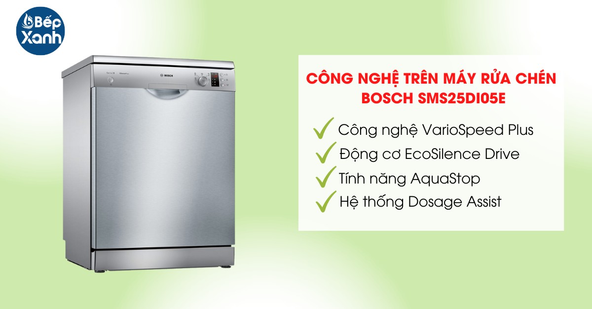 Công nghệ hiện đại trên máy rửa chén Bosch SMS25DI05E