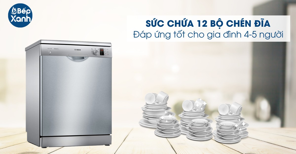 máy rửa chén Bosch có khả năng rửa sạch chén đĩa tương đương với 3-4 bữa ăn người Việt trong một lần rửa, là sự lựa chọn phù hợp cho gia đình có từ 4-5 thành viên và cả những người có làn da nhạy cảm với chất tẩy rửa.