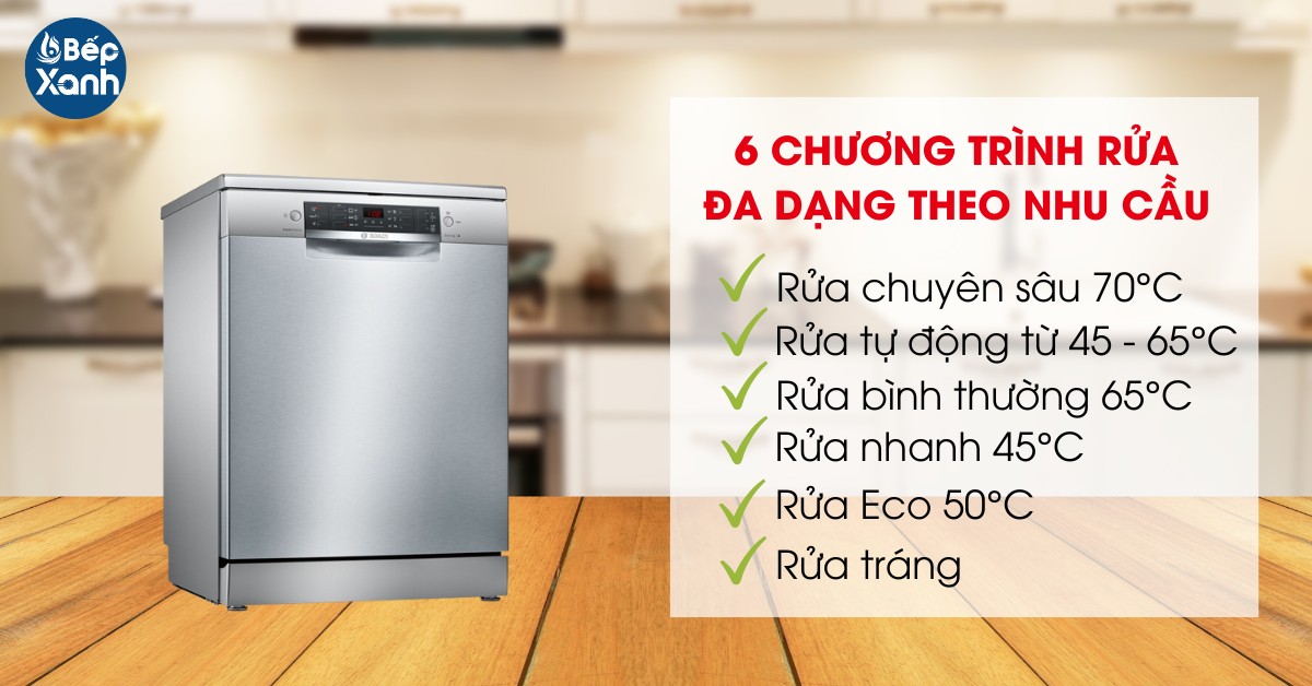 Máy rửa chén Bosch được trang bị 6 chương trình rửa giúp người dùng tùy chọn: