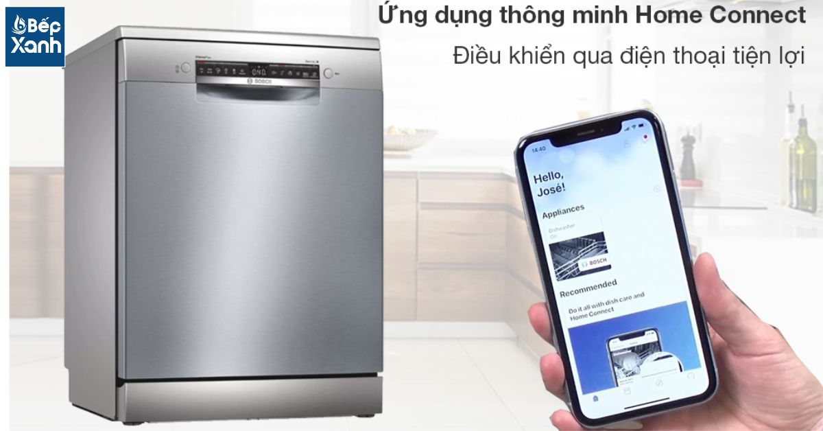 Máy rửa chén độc lập Bosch SMS4ECI14E cung cấp tính năng điều khiển từ xa thông qua ứng dụng Home Connect, cho phép người dùng có thể kiểm soát và quản lý hoạt động của máy từ bất kỳ đâu bằng smartphone của mình. Điều này mang lại tính tiện lợi và linh hoạt cho người dùng, giúp họ có thể quản lý tình trạng hoạt động của máy rửa chén một cách dễ dàng.