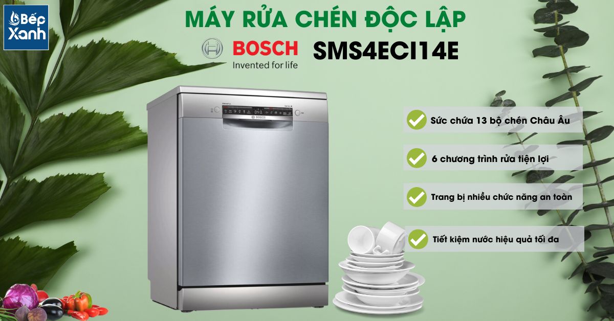 Với sự ứng dụng của công nghệ tiên tiến, máy rửa chén độc lập Bosch SMS4ECI14E đem lại lợi ích to lớn cho gia đình bạn. Không chỉ giúp tiết kiệm thời gian và công sức trong việc rửa chén, mà nó còn đảm bảo sạch sẽ và vệ sinh tuyệt đối cho các dụng cụ gia đình. Bạn sẽ không cần phải lo lắng về việc chén bát còn bám mảng bẩn hay việc rửa chén tay mệt mỏi nữa. Đến với showroom Bếp XANH ngay hôm nay để được mua sản phẩm với giá ưu đãi và nhiều chương trình hấp dẫn.