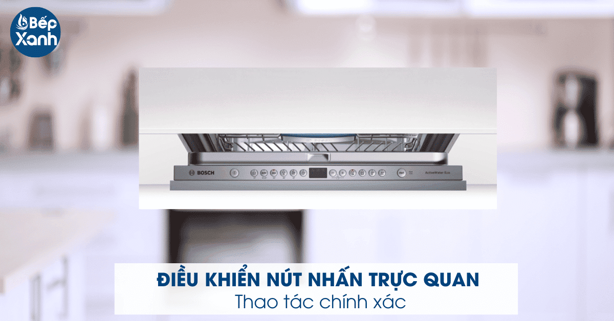 Thiết kế bảng điều khiển nút nhấn trực quan tích hợp ở mặt trong của cửa máy rửa chén Bosch giúp cho người dùng quan sát và thao tác tùy chỉnh chức năng đơn giản, thuận tiện.