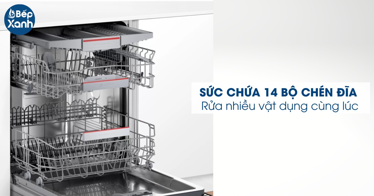 Khoang máy rộng rãi với 3 giàn rửa có thể tháo rời