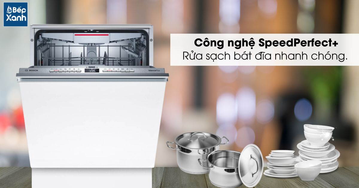 Với công nghệ tiên tiến SpeedPerfect+, công việc rửa chén hằng ngày của bạn sẽ trở nên dễ dàng và nhanh chóng hơn bao giờ hết. Được trang bị tính năng độc đáo này, máy rửa chén seri 4 SMV4HCX48E của bạn có thể rửa sạch và sấy khô bát đĩa chỉ trong thời gian ngắn nhất mà vẫn đảm bảo độ hiệu quả của quá trình rửa. Với thời gian rửa giảm đến 75% so với các dòng máy thông thường, công nghệ SpeedPerfect+ giúp bạn tiết kiệm thời gian và tiền bạc đáng kể. Bạn sẽ không còn phải dành nhiều thời gian cho công việc rửa chén mỗi ngày nữa và có thể sử dụng thời gian đó cho những công việc khác trong gia đình hoặc thư giãn thật thoải mái.