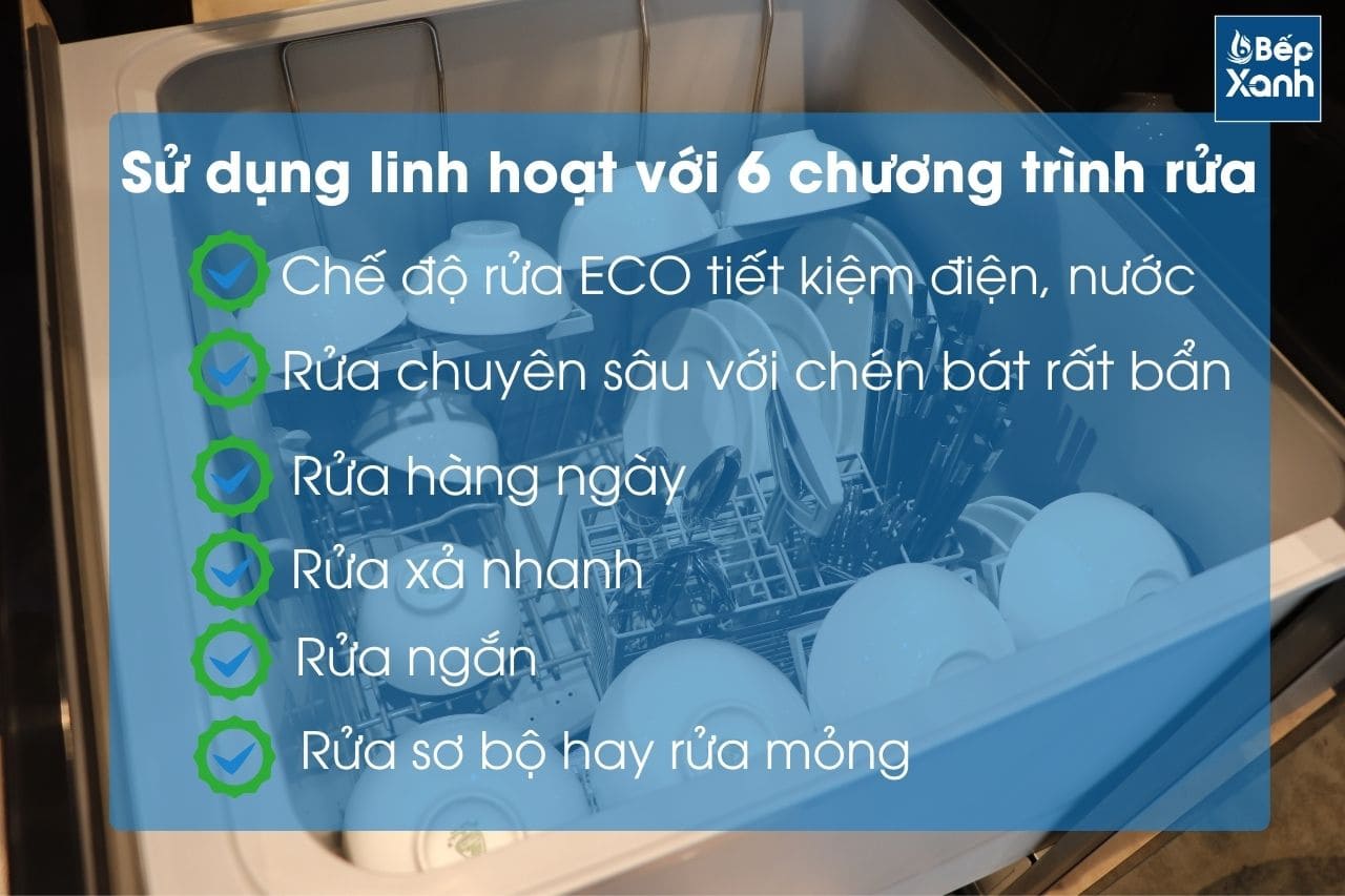 Cài đặt 6 chương trình rửa đáp ứng nhu cầu rửa khác nhau của người dùng
