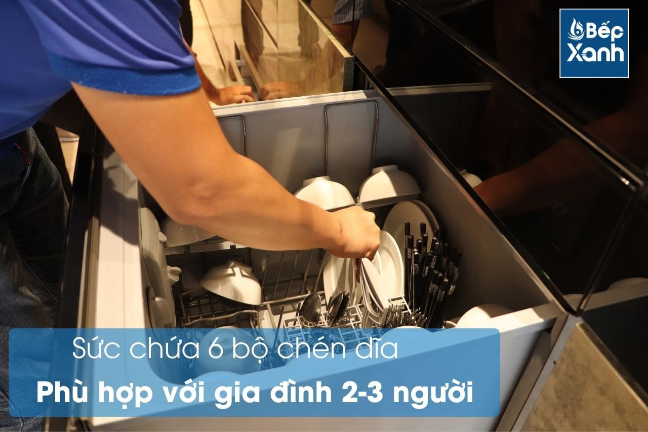 Với sức chứa lớn, máy rửa chén đáp ứng tốt nhu cầu rửa cho gia đình từ 2 - 3 thành viên. Ngoài ra, máy còn có thể rửa các loại xoong nồi có kích cỡ vừa và nhỏ vô cùng tiện lợi.