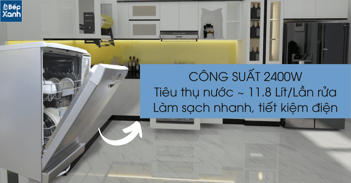 Máy rửa chén độc lập này được thiết kế bằng động cơ EcoSilence Drive không có bàn chải, giảm ma sát nên khi hoạt động rất êm và tiết kiệm điện.