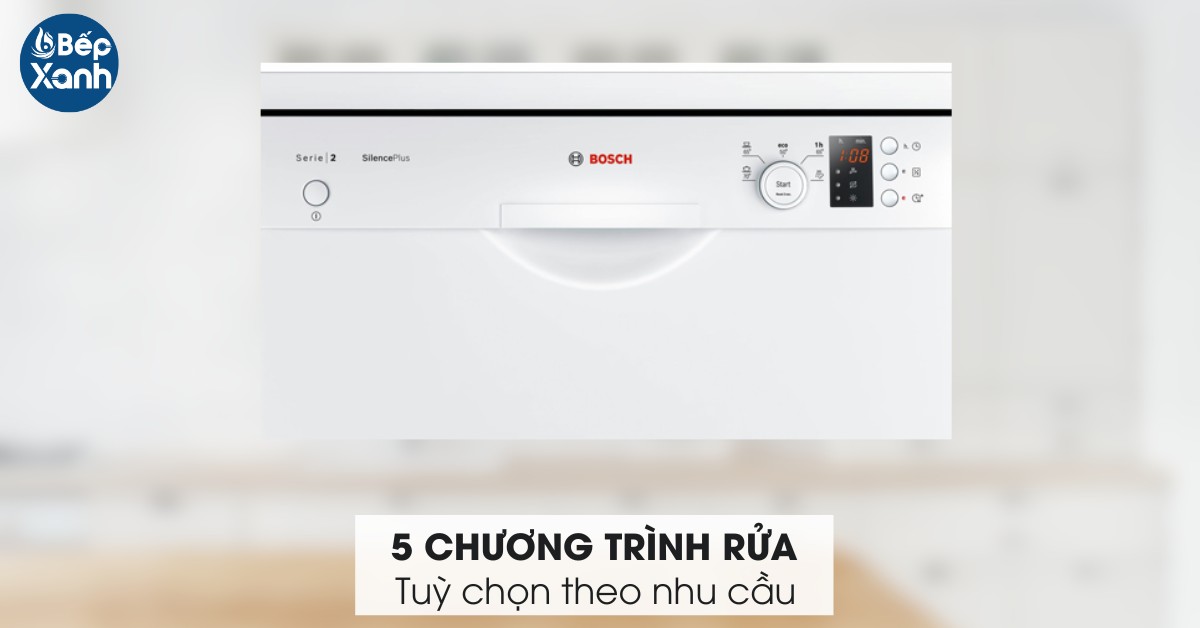 Máy rửa bát Bosch SMS25CW05E gồm 5 chương trình thông thường. Bao gồm: