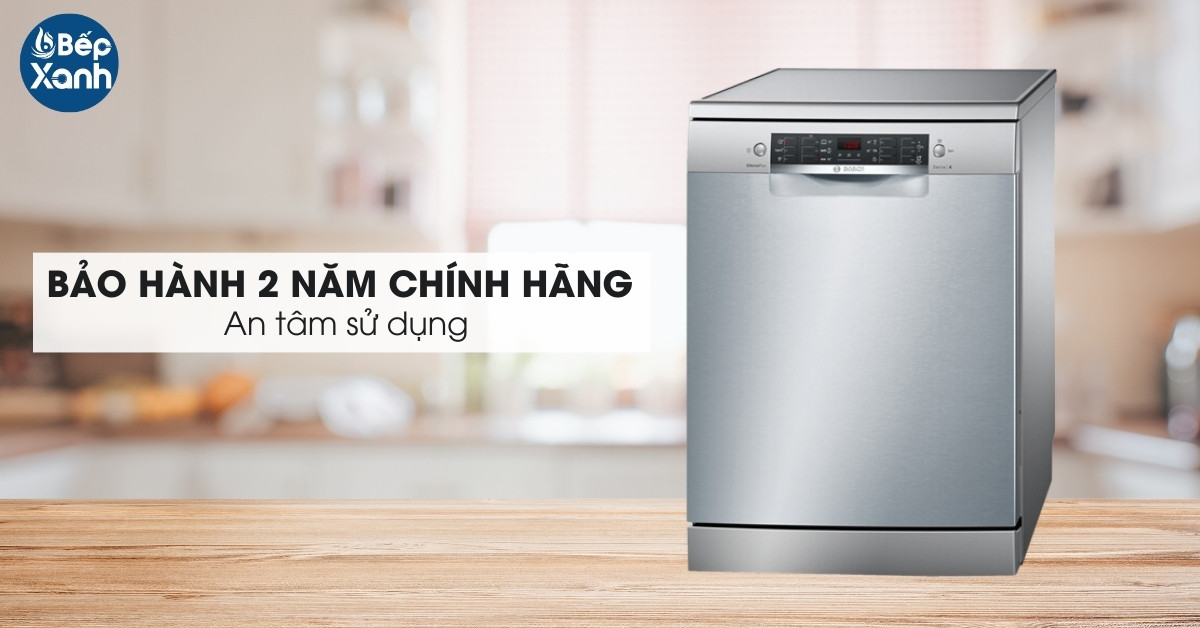 Dòng máy rửa bát gia đình Bosch SMS46GI04E được bảo hành 2 năm chính hãng tại cửa hàng, khách hàng không cần phải mang thiết bị đến tận cửa hàng mà Bếp XANH với những đội ngũ bảo hành chuyên nghiệp sẽ đến và bảo hành cho gia đình nhà bạn.