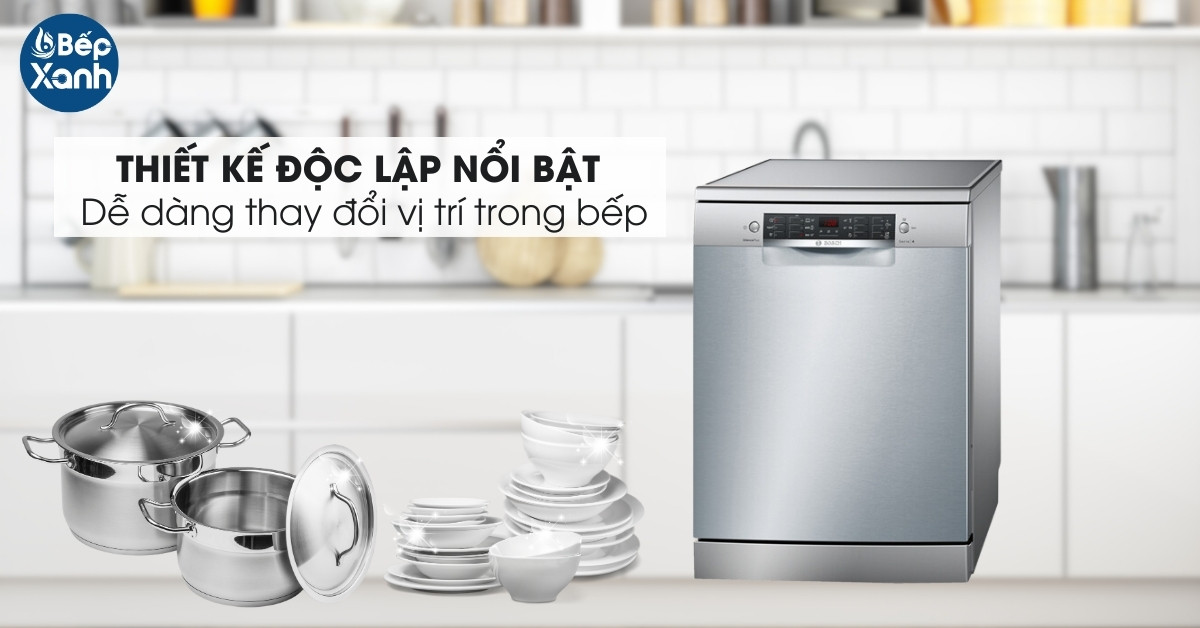 - Bosch SMS46GI04E được thiết kế lắp độc lập cực nổi bật và hiện đại. Một lựa chọn tuyệt vời cho máy rửa chén độc lập là sản phẩm có thể dễ dàng lắp đặt tại bất kỳ vị trí nào trong bếp như kệ bếp, kế bên tủ lạnh,... Với gam màu xám tinh tế, máy phù hợp với hầu hết các không gian nội thất khác nhau.