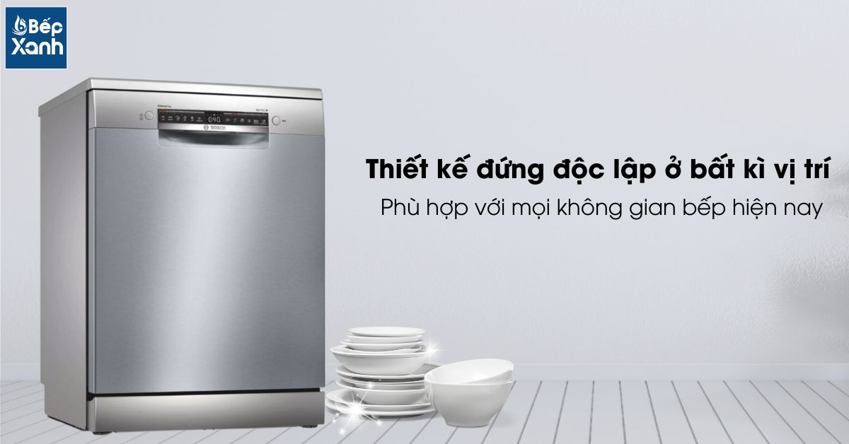 Máy rửa chén Bosch SMS4EVI14E là dòng máy rửa chén Bosch seri 4 - một lựa chọn hoàn hảo cho không gian bếp hiện đại với thiết kế độc lập và kích thước nhỏ gọn. Với kích thước nhỏ gọn, máy rửa chén này có thể dễ dàng được lắp đặt ở nhiều vị trí khác nhau trong không gian bếp mà không chiếm quá nhiều diện tích. Điều này giúp tối ưu hóa không gian bếp, đồng thời mang lại sự tiện nghi và hiện đại cho căn bếp của bạn. Ngoài ra, máy rửa chén SMS4EVI14E cũng được Bosch thiết kế với màu sắc trang nhã, sang trọng, phù hợp với nhiều phong cách thiết kế nội thất khác nhau.