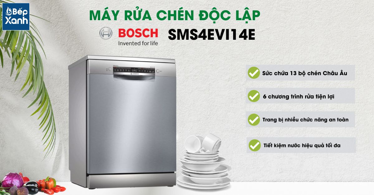 Với sự ứng dụng của công nghệ tiên tiến, máy rửa chén độc lập Bosch SMS4EVI14E đem lại lợi ích to lớn cho gia đình bạn. Không chỉ giúp tiết kiệm thời gian và công sức trong việc rửa chén, mà nó còn đảm bảo sạch sẽ và vệ sinh tuyệt đối cho các dụng cụ gia đình. Bạn sẽ không cần phải lo lắng về việc chén bát còn bám mảng bẩn hay việc rửa chén tay mệt mỏi nữa. Đến với siêu thị Bếp XANH ngay hôm nay để được mua sản phẩm với giá ưu đãi và nhiều chương trình hấp dẫn.