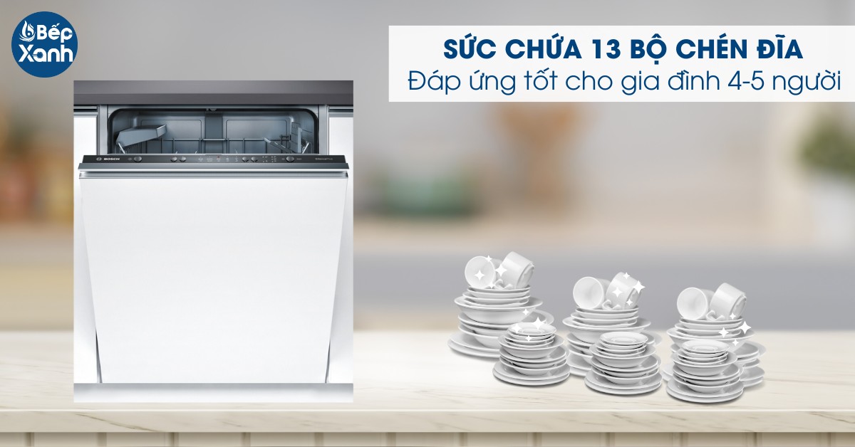- Máy rửa chén âm tủ hoạt động với công suất 2400W, rửa tốt số chén bát cho 3 - 4 bữa ăn Việt (13 bộ châu Âu).