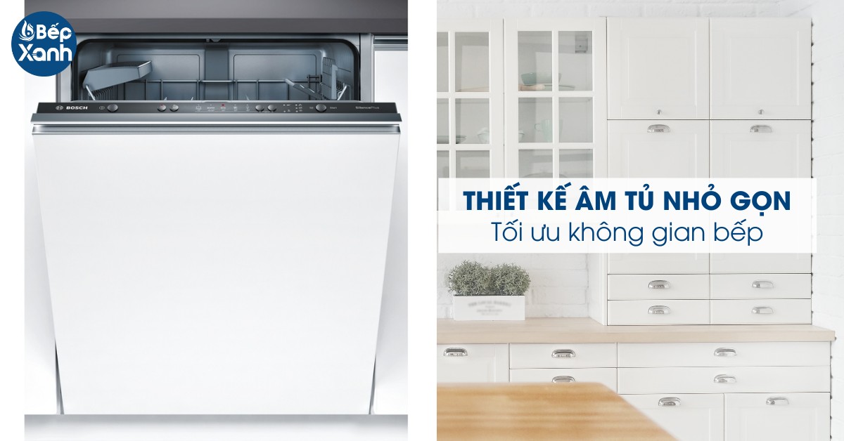 Bosch SMV25CX03E được thiết kế lắp âm tủ gọn gàng và tiết kiệm diện tích. Một lựa chọn tuyệt vời cho máy rửa chén âm tủ là sản phẩm có thể dễ dàng lắp đặt trong kệ bếp đem đến không gian thông thoáng và đồng bộ với các