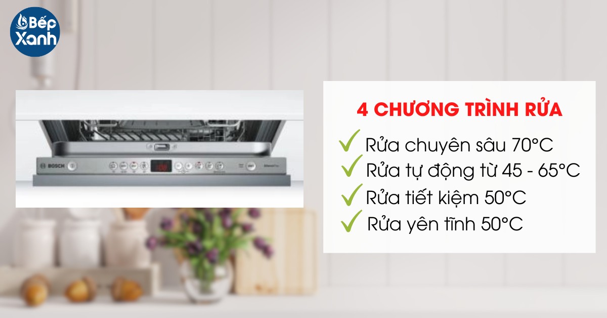 4 chương trình rửa được tích hợp sẵn trên máy rửa chén