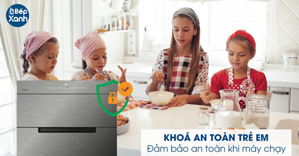 Chế độ khóa trẻ em trên máy sấy chén Canzy giúp ngăn cản trẻ nhỏ tò mò và nghịch phá bằng cách khoá cửa máy trong quá trình hoạt động, mang lại sự an tâm cho người lớn khi không có mặt tại khu vực máy đang chạy.