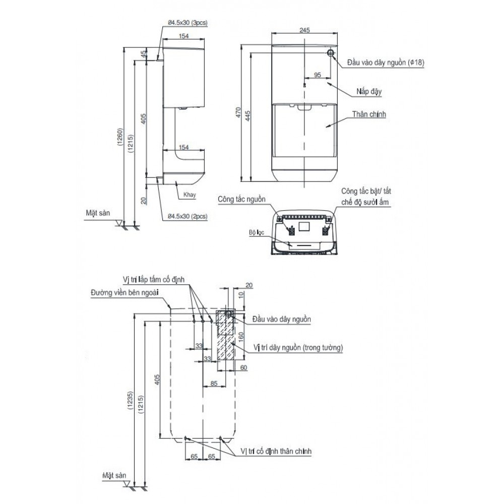 Máy sấy tay TOTO TYC322W - có khay hứng nước tiện lợi