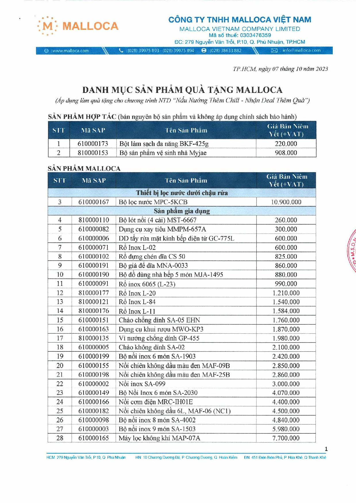 Chương trình khuyến mãi "Nấu Nướng Thêm Chill - Nhận Deal Thêm Quà" diễn ra từ 10/10/2023 đến hết ngày 24/11/2023, giá trị quà tặng đến 28 triệu đồng. Đây là ưu đãi lớn của Malloca giúp quý khách hàng mua sắm sản phẩm với nhiều quà tặng hấp dẫn.