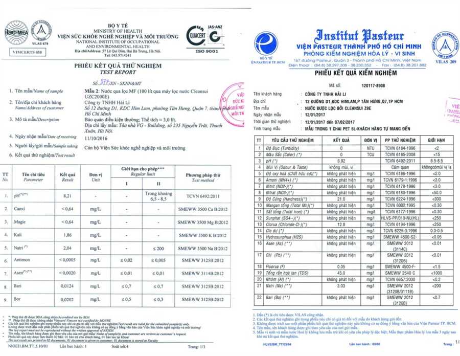 Lấy mẫu nước theo tiêu chuẩn để khách hàng có thể đi kiểm tra, Test tại các trung tâm đo lường chất lượng được chính phủ công nhận.