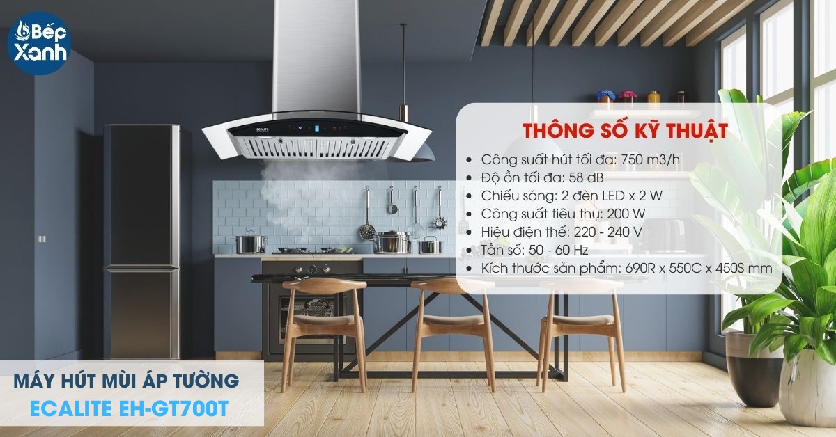 Sản phẩm được trang bị động cơ tuabin đôi hoạt động ổn định với công suất 200W đem đến công suất hút lớn 750m3/h với 3 chế độ hút cho người dùng lựa chọn linh hoạt cho nhu cầu sử dụng. Máy còn có khả năng kiểm soát tiếng ồn tốt ở mức tối đa chỉ 58dB, đảm bảo không gian yên tĩnh cho gia đình. Ngoài ra, Ecalite EH-GT700T có giao diện sử dụng rất dễ dàng thao tác cho người dùng với bảng điều khiển cảm ứng nhanh nhạy, ký hiệu được thể hiện rõ nét.