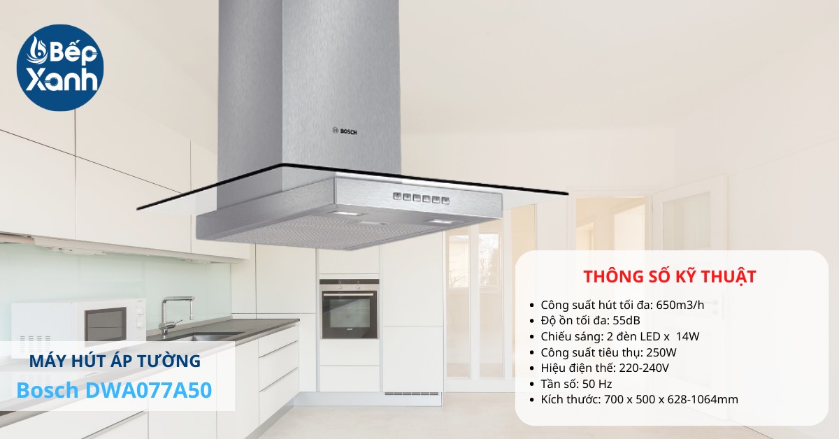 Sản phẩm Bosch DWA077A50 sở hữu mức công suất hút cao 650m3/h cho thấy khả năng xử lý khói mùi nhanh chóng ở cả phạm vi rộng, mang đến luồng khí trong lành thoáng mát cho căn bếp. Hơn nữa, thiết bị có thể kiểm soát được độ ồn ở mức lý tưởng tối đa chỉ 55dB. Với độ ồn này thì người dùng sẽ không khó chịu trong quá trình nấu nướng và cũng không gây ảnh hưởng đến không gian sinh hoạt của gia đình.