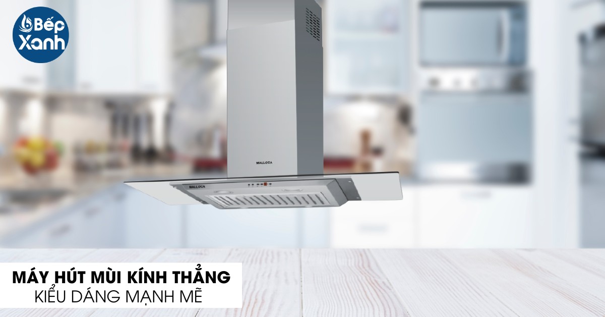 Máy hút mùi Malloca MC 9039W kính vát gam màu trắng tinh tế