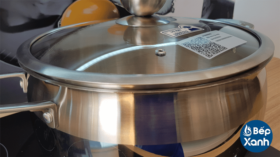 Vung trong suốt dễ quan sát sự biến đổi của thức ăn và dễ dàng thao tác trong nấu nướng