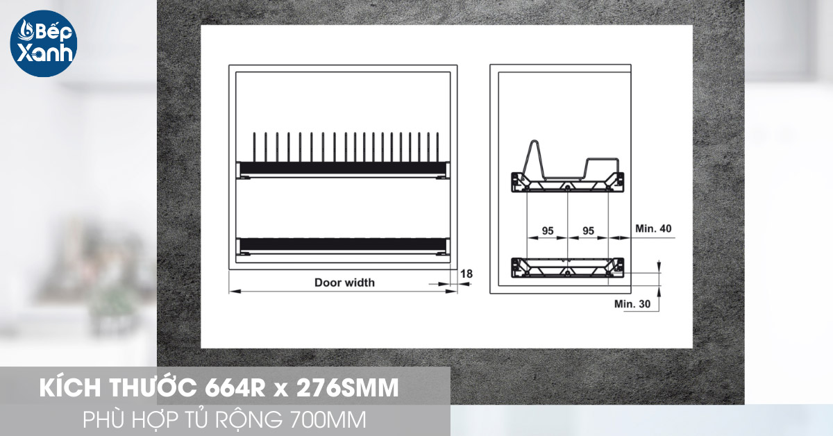 Kích thước phù hợp với tủ rộng 700mm
