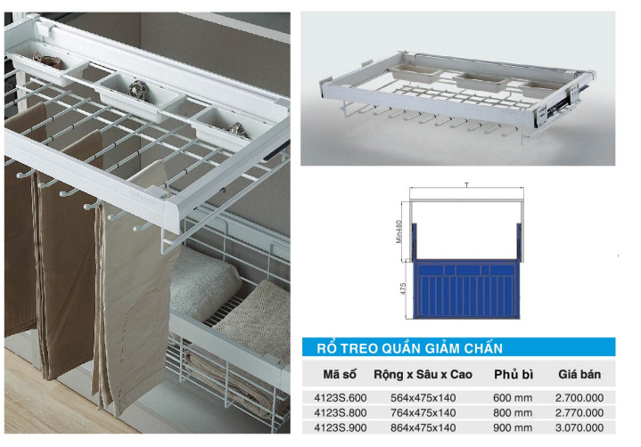 Rổ đựng trang sức và treo quần giảm chấn Higold với thiết kế hiện đại, độc đáo tinh tế không những giúp những phụ kiện trang sức được cất giữ gọn gàng mà những chiếc quần được ngăn nắp, ngay thẳng mà còn rất tiện dụng bắt mắt bởi hệ thống ray trượt giảm chấn vô cùng êm nhẹ, thoải mái mỗi khi kéo đóng.