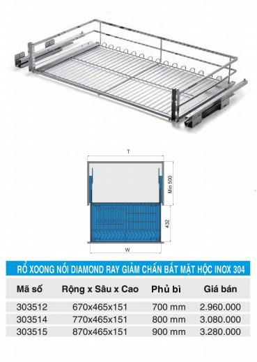 Rổ xoong nồi diamond ray giảm chấn bắt mặt hộc inox 304: thiết kế các thanh inox song song cứng, có khay hứng nước giúp tủ bếp không bị ẩm mốc khi úp chén bát còn ướt trực tiếp vào tủ bếp. Với rổ xoong nồi này giúp cho việc làm bếp thêm đơn giản, là phụ kiện bếp không thể thiếu trong tủ bếp của bất kì gia đình nào.